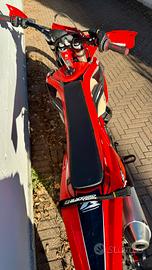 Vendo Beta RR 200 del 2021. La moto è stata acquistata da concessionario Beta nel febbraio 2024 con 30h e attualmente ne possiede 100h. (30h concessionario + 70h fatte) Vendo per passaggio ad una più recente. Nel corso dell'anno è stata utilizzata esclusivamente per uscite domenicali in fuoristrada e lavata alla fine di ogni giro, tenuta sempre riparata in garage. Lavori di manutenzione ordinaria eseguiti tutti da indicazioni ufficiali e con prodotti consigliati Beta (cambio olio freni, acqua radiatori e olio motore LIQUI MOLY, idem l'olio miscela utilizzato per il rifornimento). È dotata di kit per Enduro estremo Pezzi nuovi montati tra il 2024/2025: - Cinghia di sollevamento Blackbird anteriore e posteriore - Protezione disco anteriore Acerbis - Protezione disco posteriore Boano - Protezione piedini forcella Acerbis - Pedane in ergal - Puntale cambio in ergal - Coppia registri in ergal - Batteria litio Unibat - Pignone alleggerito con scarico fango - Catena DID 520VX3 Possedeva già: - Mousse anteriore e posteriore - Protezione forcellone - Protezione motore - Impianto elettrico semplificato - Corona in ergal - Protezione polmone P3 in fibra di carbonio - Perno per estrazione rapida ruota anteriore in ergal - Kit plastiche MY RR 2023 Revisionata ad aprile 2025 (2 anni di validità) Bollo pagato a luglio 2025 (1 anno di validità) Prezzo trattabile.