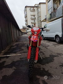 Vendo Beta RR 300 per totale inutilizzo. Modello 2016 immatricolato a fine 2015, all' incirca 150 ore. A 90 ore è stato cambiato pistone dal precedente proprietario, a 120 le forcelle con delle Showa 47 derivazione CRF. Contakm fermo a 120 ore perché con il cambio forcelle non ho rimontato il cavo, fornisco comunque cavo e forcelle originali. Para carter e para marmitta in carbonio, para motore e para forcellone in plastica. Paramani beta racing bianchi, corona in ergal nera e catena RK takasago. Portatarga attacca e stacca. Manubrio piega alta racetech. Insieme alla moto cedo vari accessori, para disco acerbis,due set di paramani aperti e chiusi, una sella, un rivestimento sella, un set completo di plastiche ancora imballato, manubrio originale, due filtri dell aria nuovi e due usati, getti e spilli per carburare. La moto è appena stata tagliandata e controllata da officina specializzata, con aggiunta di cambio faro anteriore, led stop posteriore, manopole e cavalletto nuovi. Cerchi e gomme Motard omologati a libretto.