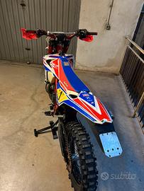 Monta svariati accessori tra cui accensione a pedivella, para motore, copri polmone in carbonio, para forcellone, leve antirottura, corona rinforzata mousse anteriore e posteriore batteria a litio...
