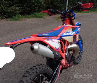BETA RR 300 mod. Racing Imm. 02/24 con solo 62 ore. Presa a 18 ore nel 03/25 da un amico e gelosamente custodita. Modello Racing quindi sospensioni Kayaba e impianto con doppia candela di serie. Mai fatto gare, uso sporadico domenicale con amici in giro per i boschi. Cambio olio ogni 10 ore. Filtro aria pulito e oliato ad ogni uscita - ne ho diversi che faccio girare. Corona, pignone, cruna e catena sono nuovi. La moto monta le seguenti parti aftermarket: - Plastiche Racetech con kit adesivi originali Beta, appena montati. - Sospensioni ant. e post. con molle Andreani by GM Suspension. - Kit accensione a pedale, oltre avviamento elettrico di serie. - Protezioni radiatori Boano. - Pedane Boano. - kit regolazione rapida mono Boano. - Protezione disco posteriore Boano. - Protezione carter accensione Boano. - Manubrio rialzato One-Gripper. - Attacco manubrio PHDS X-Trig, smorza impatti e vibrazioni a braccia e polsi. - Copertina sella Blackbird mod. Zebra. - Switch mappe rinviato al manubrio. - Ventola raffreddamento con termostato. - Tubi radiatore in silicone. - Disco freno posteriore pieno. - Protezione motore AXP, spessore 8 mm, estesa fino all'attacco del mono. - Mousse Michelin al posteriore. - Camera d'aria rinforzata Michelin all'anteriore. - Protezioni telaio e paramani R-tech. - Tappo serbatoio Beta in alluminio anodizzato rosso. - Leva cambio NRTeam. - Leve freno e frizione NRTeam snodate, rosse. - Puntale freno posteriore maggiorato, rosso. - Vari componenti estetici in alluminio anodizzato. Presenta normali e trascurabili segni di utilizzo. Parti originali disponibili. Previo accordo la moto si viene a vederla - portate pure un meccanico di fiducia, sarete i benvenuti. Non scambio, vendo. Primo contatto via subito. Non si prenota, non si spedisce o altre stranezze. Pagamento a mezzo bonifico con successivo e passaggio di proprietà a carico dell'acquirente. E' disponibile finché l'annuncio è visibile, quindi evitate di chiederlo.