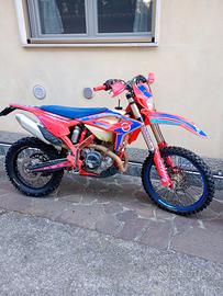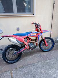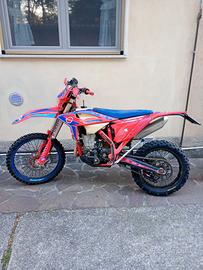 Vendo Beta RR 350 Racing 2023, immatricolata fine 2022. Moto con circa 120h, sempre tagliandata ogni 20-25. Sospensioni full KYB da poco revisionate e preparate da Delta Sospension. Monta vari optional: Para radiatori, ventola, disco flottante anteriore, disco pieno posteriore. Revisionata da poco pompa acqua. Moto in ordine. Vendo per passaggio a 2T.