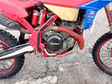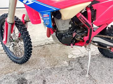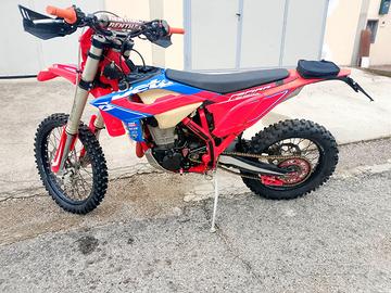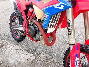 Grafiche Racing ma è la versione normale. Tenuta perfettamente, sempre controllata da officina Entrophy Perugia. Statore nuovo, revisionata forcelle, cambio olio ogni 10 ore. Mousse fronte retro, 100 ore, solo enduro amatoriale. Perfetta. Posso consegnare in tutta Italia.