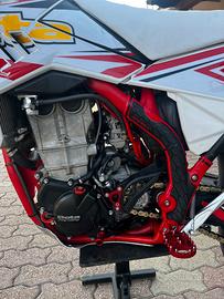 Beta RR 450 4t 2013 Motard. (PATENTE A2) (omologazione presente sul libretto) Per informazioni chiedere pure ma solo se realmente interessati. - grafiche Cecchigraphics design - copertina sella wob design - terminale in titanio Akrapovic con db killer estraibile. - portatarga reclinabile devcraft - plastiche complete bianche con mascherina e parafango 2023 - impianto frenante maggiorato, disco braking margherita 320mm, spostapinza artigianale, pompa freno anteriore radiale Brembo 16x18, tubo in treccia. - moltissime powerparts ed ergal vario La moto presenta all'attivo 27 ore, in totale di telaio ha 14.000km. Blocco rifatto e revisionato completamente a Maggio 2025, con fattura del lavoro annessa. La moto è stata tagliandata 10 ore fa, olio motore, olio cambio, filtro olio, pastiglie anteriori, posteriori, cambio e spurgo olio freni e frizione. Revisone fatta e bollo pagato recentemente. La moto è impeccabile, qualsiasi cosa possibile è stata controllata e revisionata. Sono un meccanico di professione e un appassionato per cui la moto è sempre stata tenuta e trattata benissimo, usata principalmente per uscite domenicali sui passi. Vendo a malincuore per cambio progetto.