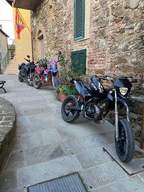 vendo beta rr 50 con montatati i seguenti pezzi: gruppo termico 70 airsal montato da poco con pistone monofascia cambiato dopo il rodaggio (prima bifascia) carburatore 21 motorforce racing collettore top 360 pacco lanellare motorforce racing doppi radiatori ktm sx gas rapido domino corona 50 denti voca blu pignone rhental 13 denti catena nuova mono nuovo scarico calcolato per 70 giannelli albero spalle piene carter lavorati e travasi allargati filtro stage6 (non in foto) manopole domino nere e grigie carburazione sempre fatta al 3% anticipo ricalcolato