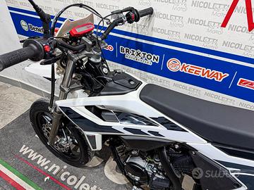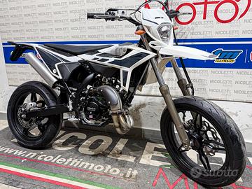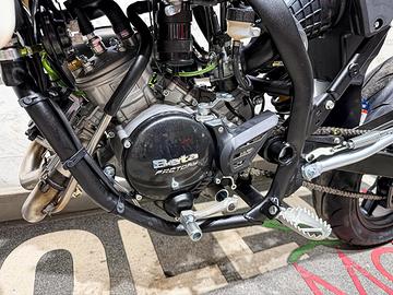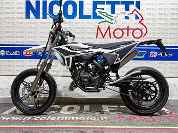 Motore Motore monocilindrico 2-tempi, 6 marce, raffreddato ad acqua ed equipaggiato con oil mixer (tranne RR 50 Racing). Nuovo cambio con nuove forchette forgiate: innesti più precisi per una guida ancora più reattiva e appagante. Nuovo sistema di recupero vapori benzina in conformità con normativa Euro 5+. Nuova scatola filtro. Parte integrante dell'estetica del veicolo, è sviluppata per migliorare il contenimento del rumore in conformità con le normative vigenti. Ancora più pratica: adotta un sistema di sgancio rapido del filtro per facilitare la manutenzione come le moto racing. Telaio Nuovo telaio con geometria rivista, per una migliore maneggevolezza e agilità di guida. Nuovo design: puro stile racing che si ispira alle RR 2T/4T più grandi. Tutto è nuovo: design del serbatoio, sovrastrutture plastiche (mascherina, convogliatori e fianchetti) e sella. Telaietto posteriore in polimero tecnico che integra alla perfezione i vari componenti elettrici, la scatola filtro e i braccetti in acciaio. Un design organico e moderno da adulti. Forcellone più lungo per una maggiore stabilità di guida e una migliore trazione. Ammortizzatori rivisti nelle corse per le versioni enduro e nel tamponamento per quelle motard: migliorano rispettivamente la capacità di affrontare percorsi off-road più impegnativi e di assorbire le asperità urbane. Nuovo scarico: compatto, racing, degno di una vera moto. Nuovo sistema mono serratura. Una sola chiave per bloccasterzo/avviamento, serbatoio e sella. Tanta praticità e sicurezza. Nuovo fanalino posteriore a LED: migliora la sicurezza nell'identificazione del veicolo. Freni: anteriore a disco Ø 260 mm, posteriore Ø 220 mm. Nuovo serbatoio da 6,5L. Nuove pedane poggiapiedi microfuse per un controllo di guida senza precedenti. Decalco grafiche di grande personalità: uno stile unico per non passare inosservato. SCHEDA TECNICA Motore: 50cc 2 Tempi, Monocilindrica Potenza Massima: 45km/h Cambio: 6 Marce Avviamento: Pedale Raffreddamen