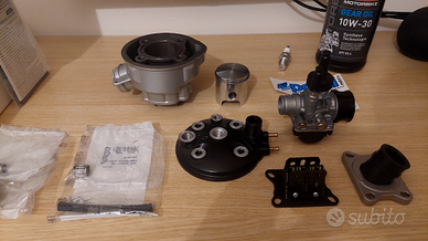 gruppo termico, carburatore, pacco lamellare e collettore, ulteriori lamelle in carbonio polini nuove, carburatore, marmitta, trasmissione originale (12-60), coperchio filtro dell'aria, leve originali, specchietto e frecce.