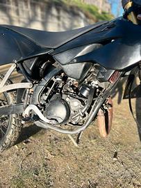vendo beta rr 50 da enduro del 2009 , ben gommata e bene utilizzata, insieme cedo anche dei pezzi come visibile dalle foto. la moto monta un cilindro maggiorato nero mineralli da 75 cc , le forcelle Marzocchi , e scarico Leovince . insieme alla moto cedo anche il gruppo termico originale e lo scarico originale. La moto a telaio ha 7700 km ma il gruppo termico è stato cambiato a 6100km quindi è praticamente nuovo. La revisione scade il 07/2027. La moto non è dotata di miscelatore così e più affidabile.