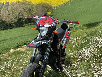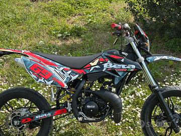 Vendo Beta RR 50 motard sport del 2017. La moto è in buono stato, sempre tenuta al chiuso. La manutenzione è sempre stata fatta regolarmente. Non ha problemi meccanici e mai incidentata. Attualmente monta: -gruppo termico dr 70 -scarico top performance completo -carburatore 21 -pacco lamellare top performance -kit trasmissione cambiato da poco -gomme circa 70% Forniamo con la moto tutti i pezzi originali che sono stati sostituiti. Il contachilometri segna la velocità ma non i chilometri