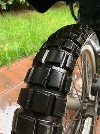 Telaio sano, plastiche nere, forcelle e ammortizzatore in buono stato.