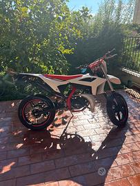 Beta rr 50 del 2023, primo proprietario. ora come ora sotto monta gruppo termico top viola 75 cc, scarico completo katrace calcolato per 75, carbu 24 pwk, filtro dell'aria top, kit collettore aspirazione malossi.Se interessati cedo anche tutti i pezzi originali compreso il gruppo termico. per quanto riguarda l'estetica modificata, la moto presenta il manubrio rosso, manopole protaper rosse, specchietto retrovisore senza l'asta, parapetto scar, parafango da enduro, piatta di 24mx, barra led e micro frecce posteriori. Dei 4050 km quasi 2000 sono stati fatti quando il motore era ancora completamente originale. Infine la revisione sarà da effettuare tra due anni poiché 4 dall'anno di immatricolazione. Per ulteriori info contattare in privato.
