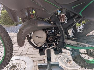 La moto è un beta rr 50 da enduro, alla quale è stato montato un: -Cilindro 80cc Athena -Pacco termico rinforzato Athena -Marmitta Katrace: terminale+espansione -Carburatore dell'orto 19 (anche il 21) -Filtro aperto Malossi -Pacco lamellare Malossi -Gomme Michelin in buone condizioni -Impianto frenante originale Prezzo 1500€ Trattabili