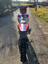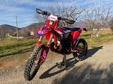 vendo beta rr 300 racing immatricolata a ottobre 2021 my 2022; alla moto è stato cambiato il telaio in garanzia nel gennaio 2024 (classico problema dei telai 2020-2024 che crepavano sotto il canotto) con il telaio 2024 quindi quello aggiornato con la trave centrale più larga di 1 cm. Motore e telaio con circa 130 ore (quando è stato sostituito il telaio è stato rifatto anche il motore), forcella con 30 ore dall'ultima revisione e mono originale zf mai usato, possibile averla con l'ohlins ttx. Viene venduta con para motore incluso di paralink racetech, para carter frizione, espansione fresco e espansione originale, disco pieno posteriore e moto master wave anteriore, pastiglie ant e post all'80% e trasmissione Did con 50 ore. Prezzo trattabile dopo prova e visione.