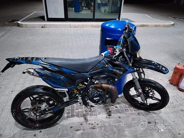 Vendo moto 50 rr motard del 2015 con plastiche nere e blu con marmitta Giannelli completa + kit top nero (73.5 cc) con 5000 km, e plastiche originali bianche e rosse incluse.