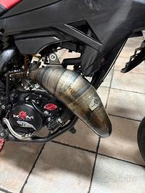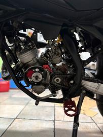 vendo beta rr 50 2015 la moto monta i seguenti componenti: MOTORE -Tpr 86 -Albero Top Tpr c44 -Carter raccordati e lavorati nel condottondi aspirazione -Carburatore PWK 28 -Pacco lamellare Vforce3 -Collettore malossi 360 -Accensione a rotore interno selettra digitale -Scarico KRM 80/90 passaggio alto -Silenziatore Katrace in carbonio -Cambio top rinforzato -Aste e Forchette Top rinforzate -Frizione top con molle da 110kg -Cestello frizione top -Spingidisco Top ESTETICA -plastiche nere nuove -manubrio da 28,6 con annessi risers -Cerchi Motard -corona stage 6 53 denti -manopole emig -pedaline in ergal anodizzate rosse -pompa radiale 16x18 motoforce anodizzata rossa -fermabielletta carenzi anodizzato rosso La moto è in buone condizioni,il motore è stato assemblato da 20h circa,sempre tagliandato regolarmente,prezzo leggermente trattabile