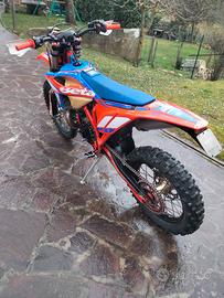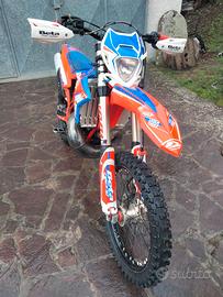 339 ore totali, rifatto motore, biella, pistone e cilindro 69 ore all'attivo. Revisione forcelle 29 ore all'attivo. Ventola radiatore, sella one gripper, leve in ergal antirottura.
