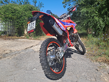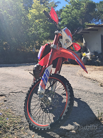 Moto da enduro 2T in perfette condizioni, comprata nuova e mantenuta sempre al coperto. Il motore è originale, è stato messo uno scarico completo Giannelli e un carburatore 19, ma nella vendita sono inclusi ovviamente i pezzi originali.
