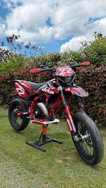 Vendo a malincuore beta track 50 (77) 2017. La moto è in condizioni ottime ed è stata fatta la manutenzione regolarmente. La moto monta: Doppio radiatore Cilindro Stage 6 77 BR lavorato Carter completamente lavorati Pacco lamellare vforce 4R Collettore 360 gradi Carburatore 24 Accensione 12 poli Dischi frizione top rinforzati Molle rinforzate Albero motore top spalle piene Gabbia rulli top Cuscinetti nuovi Biella top Scarico completo scalvini Filtro a cono. Estetica: Specchietti sotto sterzo Kit plastiche nere Grafiche Custom Angel eye Parafango tm (Cedo pure Parafango cross beta, Parafango beta originale) Portatarga pieghevole dev and craft Faretto posteriore a led Paracolpi renthal Manopole domino Mini frecce a led Leva frizione rossa anodizzata Mascherina beta 300 Paramani circuit Termometro temperatura Per altre informazioni contattate: 3516248006