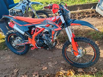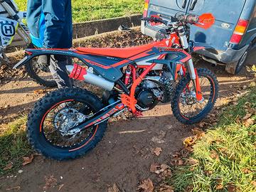 Vendo Beta Xtrainer 300 2t MY 2025 con 58 ore, 1 anno di garanzia ufficiale. Moto tenuta in modo maniacale,regolare manutenzione programmata, forcelle originali revisionate, alcuni accessori visibili in foto. Monta gomme enduro medium Michelin 90% davanti e 80% dietro. Moto perfetta, normali segni di usura per un uso amatoriale nei boschi sopra casa,vendo per passaggio a RR Beta