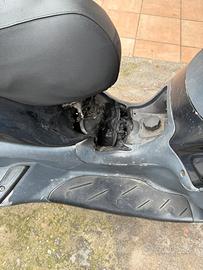 Batterie e gomme appena sostituite. Unico danno causato da cortocircuito che ha sciolto le plastiche e innescato un piccolo incendio che ha toccato i fili dello scooter.
