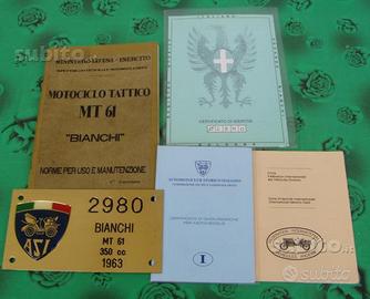 Bianchi MT 61 perfetta e conservata in condizioni stupende completamente originale in ogni particolare con accessori introvabili come ad esempio la catena da fango per la ruota posteriore - asi targa oro certificata FIVA e Registro Storico Bianchi vendesi per passaggio a categoria superiore no permute - Euro 6500 poco trattabili viste le condizioni, gli accessori e le certificazioni Tel. 333-2049911