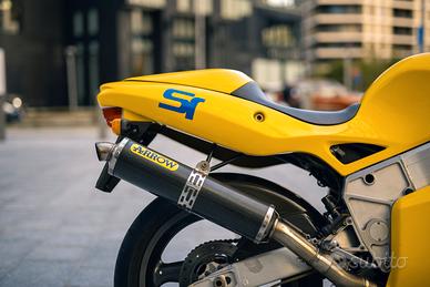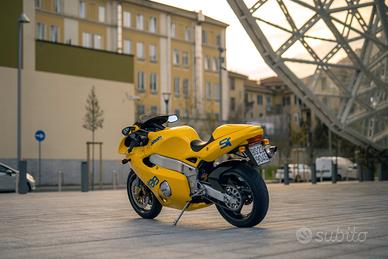 Vendo stupenda e originale Bimota YB9 SR, una rara sportiva quattro cilindri, in un accattivante colore giallo e dotata di scarico aftermarket Arrow. Includo anche scarico originale, sella passeggero, poggiapiedi e il Certificato di rilevanza storica e collezionistica rilasciato dall'ASI.