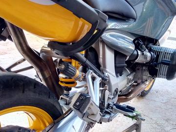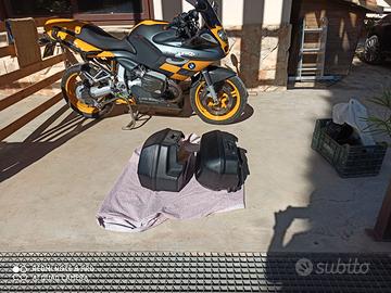 moto super accessoriata e super tagliandata, sospensioni Ohlins davanti e dietro scarico completo Leovince SBK aperto + db killer centralina eprom laser coppia borse bmw con la stessa chiave borsa da serbatoio originale kit cover fibra di carbonio porta targa rizoma cavalletto officina plex originale manopole riscaldate di serie appena fatto super tagliando con sostituzione motorino avviamento, frizione, gomme seminuove, moto da amatori no perditempo