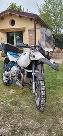 BMW 1150 GS anno 2003, in ottime condizioni con telaio blu -Motore rifatto a 81'747 km (quindi ad oggi 30'000 km circa). In tale occasione modificata con: - serbatioio raid Acerbis/Touratech da 41 litri in resina (oltre 700 km di autonomia), - sella bicolore bianca/blu antiscivolo, - parateste Touratech, - scarico Remus (disponibile scarico originale), - Topcase alu Mytech Raid 55 litri (compreso), - Telaietti laterali Givi Monokey (disponibili maniglioni passeggero portavaligie originali), - Tanica 1,5 litri, - Presa accendino + 2 USB + voltmetro, - Polo positivo esterno, - Presa DIN per mantenitore di carica, - Cupolino maggiorato fumè con deflettori, - Gomme Pirelli Scorpion Rally STR, - Riser manubrio (H30 L 21). - Frizione nuova. Totale lavori 4500 euro. Altre foto e informazioni via whatsapp. Disponibile per visione e prova.