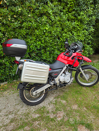 Salve, vendo Bmw 650 g del 2001, iscritta all'albo FMI, sempre tagliandata e curata. prossima revisione 17.07.2025 moto accessoriata con borse laterali più bauletto posteriore molto spazioso. + bullbar anteriore + faretti bassi a led + led nel faro + paramani + specchietti sport drive + cupolino alto Isotta - super in autostrada. Appena gommata