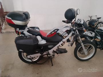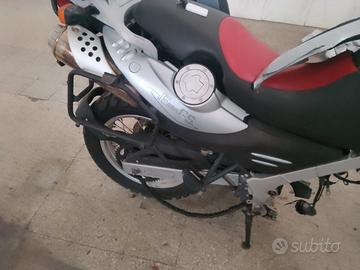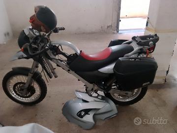 carrozzeria forcelle accessori gomme nuove frizione di ricambio 16mila km vendo per parti di ricambio poiché il motore è completo e funzionante catena di distribuzione, fasce pistoni etc solo che deve essere rimontato dall' inizio. purtroppo per un tintinnio che sentivo nel motore,per non portarla alla BMW lo portata da un meccanico assolutamente incompetente o truffaldino che dopo un mese non trovando niente che non andava me la sono ritrovata con il motore completamente smontato a pezzi.comunque c'è tutto ma io non ho tempo. quindi la vendo con o senza fare il passaggio con borse laterali e posteriore con paracolpi motore e paracolpi laterali con fari aggiuntivi con manopole riscaldare presa per telefoni prezzo ridicolo