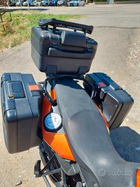 Super accessoriata con manopole riscaldate, faro led anteriore con griglia di protezione (consegna anche faro anteriore originale), parabrezza Givi (consegna anche parabrezza originale), e monta portapacchi Givi su top case Motorrad, come anche le 2 borse laterali, tutte estendibili fino ad un volume max di 30 litri ciascuna.