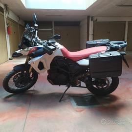 F800GS di marzo 2011. 73.250 km. Serie Trentennale con livrea bianca rossa e blu. Borse laterali rigide in plastica originali BMW espandibili a soffietto tramite meccanismo interno. Paramani in acciaio. Paramotore in alluminio. Cavalletto centrale. Piastra GIVI per bauletto inclusa (no bauletto). Piastra GIVI per aggancio borsa serbatoio (no borsa). Motore perfetto. Unici difetto parabola faro opacizzata. Secondo proprietario, presa come nuova a 22.000km. Olio Bardahl e filtro cambiati a 65.000 km. Pasticche freni ant Brembo serie rossa 64.100km. Cambiati nel tempo cuscinetto cannotto sterzo e pompa benzina. Cambio completo fluido refrigerante e pulizia radiatore a 71.000 km. No ABS. Revisione regolare Nov 2023. REGALO software interattivo per MANUALE OFFICINA BMW. REGALO sella Touring originale BMW per comodi viaggi in coppia. Possibilita di includere: Cambio Gomme, olio forke, olio motore, gioco valvole, faro anteriore, Passaggio di P.: tutto compreso 5.200E