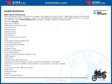 Chilometraggio: 22156 Condizioni: usato Immatricolazione: 05/2023 Tipologia: Moto - Enduro Stradale Carburante: Benzina Tipo di cambio: Manuale Codice: PIS-RMM260062 Marca: BMW Modello: F 850 GS Prezzo: EURO 12.490 Categoria: Enduro Stradale Anno: 2023 Km: 22156 Kw: 70 CV: 95 Colore: BLACK STORM MET Cilindrata: 850 Stato: Ottimo Accessori/Note: STATO OTTIMO, TRIPLE BLACK, UNICO PROPRIETARIO, TAGLIANDI BMW REGOLARI E DOCUMENTATI, GARANZIA BMW FINO A 05/2027, BOLLO FINO A 02/2027, FULL OPTIONAL (VEDI SCHEDA IN FOTO), VISIONABILE SU APPUNTAMENTO. FINANZIAMENTI E SPEDIZIONI IN TUTTA ITALIA RIF. 488 Servizi Offerti: * Controllo di Pre-consegna * Garanzia 12 mesi estendibile a 24 (moto max 20 anni) * Finanziamenti personalizzati per importo e durata. * * La dotazione reale può differenziarsi dalla dotazione pubblicata nell'annuncio. **************************************** Moto visibile presso: CMTmotor di ROMA (RM) Via della Pisana, 70 Tel.: E-Mail: roma.pisana@sitoweb **************************************** Rivenditore CMTMOTOR - ROMA VIA PISANA