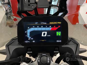 Colorazione Trophy, + gomme tassellate con 350km, keyless, Dynamic Pack, Enduro Pro Pack, predisposizione navi, RDC, cruise control, cavalletto centrale, oltre a ?2500 di accessori che vedete montati. Set di borse impermeabili con relativi attacchi (anche per valigie rigide non incluse) paramotore, faretti led, paracoppa alluminio, estansione paramani, estensione cavalletto, cupolino fumè. Fatturabile.