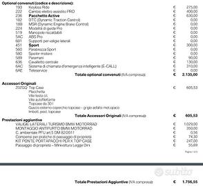 Vendo moto in oggetto in perfette condizioni con soli 5600 km. Versione sport. Optional inclusi originali come da foto allegata (valore totale 16.747 €). Vendo per scarso utilizzo. No perditempo, grazie. Saluti. Andrea