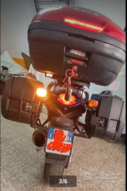 Come da titolo moto con 44000 km monta supporto valigie Hepco e Becker originale per questo modello con valigie rigide con chiavi originali stessa marca. Bauletto GIVI per 2 caschi con luci. Cavalletto centrale e laterale. Tappo finto serbatoio. Supporto telefonino e presa USB doppia. Faretti supplementari. Etc etc.