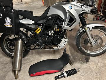 La moto è del 2012 ma ha solo 32mila km. L'ho comperata a una signora che la usava molto poco ma anche io non riesco a usarla come si dovrebbe. Lo scorso anno ho sostituito la pompa dell'acqua e dell'olio perché c'era una piccola perdita dalle guarnizioni. Ho sostituito le molle della forcella con quelle progressive della HiperPro revisionandola completamente. (Ho le molle originali) Ho montato un ammortizzatore Ohlins regolabile come da foto e sostituito la marmitta con una LeoVince in carbonio e riprogrammato la centralina non per avere più potenza ma per avere una curva di coppia più lineare e ai bassi regimi (tutto documentabile). La batteria ha 1 anno. Oltre alla marmitta e all'ammortizzatore originali ho anche una seconda sella in gel per viaggi lunghi e un secondo parabrezza fumè. La moto ha la serie completa di valigie e bauletto estensibili e apribili con la chiave di accensione dotate di di 3 borse interne dedicate oltre a una borsa serbatoio BMW da 10lt. Manopole riscaldate e sensori pressione pneumatici oltre all'ABS e ai faretti supplementari.