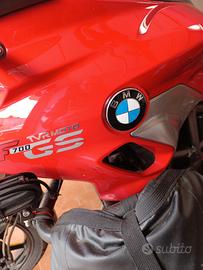 vendo bellissima BMW F700GS completa di accessori: tris valigie GIVI manopole riscaldate , cavalletto centrale,sella morbida,faretti supplementari a led,cupolino alto,tubi paramotore, ABS, pneumatici al 90 / ,tagliandata pronta a partire. disponibilità a qualunque prova km 26300