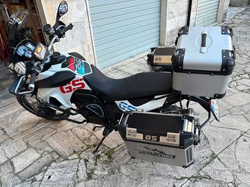 Bmw f800 gs del 2011, sempre tagliandata e ricoverata in garage...solo 50.000 km...tris di valige in alluminio, 4 faretti supplementari e cupolino fumé alto...un'occasione!!! Prezzo leggermente trattabile.