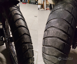 Vendo moto Bmw F 800 GS Adventure colore Racing Red, in ottime condizioni generali, sempre mantenuta con cura e pronta all’uso. Mai incidentata. Solo una lieve scivolata a bassissima velocità su ghiaccio con segni estetici sul lato sinistro (paramotore e plastica del finto serbatoio). Nessun danno strutturale o meccanico. Motore: 85 CV (63 kW) – coppia 83 Nm Mappature selezionabili : ROAD/ENDURO Tagliando eseguito all'inizio dell'inverno, 09/2025 (0Km) Bollo Pagato fino gen./2026 Ottima e confortevole per turismo, uso quotidiano, trasporto passeggero e off-road Ciclistica e manutenzione Forcella USD Ø 43 mm, escursione 230 mm (revisionata 2025) Doppio disco anteriore 300 mm con ABS Disco posteriore 265 mm con ABS (nuovo 09/2025) Pneumatici Metzeler Karoo Street: anteriore 80%, posteriore 30% Batteria nuova 2025 Bauletto posteriore in alluminio, con chiave. Poggia schiena passeggero su bauletto. Piastra bauletto rinforzata telaio navigatore e porta navigatore Allestimento Adventure: Serbatoio maggiorato 24 litri consumo 4,3/4,7 l/100km - verificata autonomia di 450Km Barre paramotore e protezione coppa Telai portaborse e telaietto posteriore rinforzato Parabrezza maggiorato Sella comfort Adventure (h 890 mm) Pedane enduro maggiorate ABS disinseribile Pacchetto Equipment : Cavalletto centrale - Manopole riscaldate - Computer di bordo con mappatura strada e fuoristrada Fari fendinebbia e luci posteriori a LED Frecce bianche a LED Anteriori Moto ideale per viaggi e percorsi misti. Disponibile per visione e prova, previo deposito di un documento con la moto verranno consegnate coppia di borse laterali morbide GIVI Prezzo moderatamente trattabile