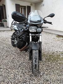 Con dispiacere vendo moto con gomme nuove e freni giugno '24, catena, corona e pignone luglio '24, fatto raschiaolio forcelle anteriori per lieve trafilamento, ABS, paramani, manopole riscaldate, bauletto e borse laterali, unica con cupolino in policarbonato che migliora l'estetica, revisionata fino 09/25, batteria nuova, tagliando olio, filtri e candele 01/25.