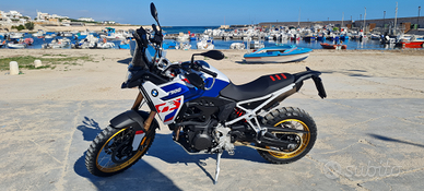 L'allestimento della F900gs è full optional, con dinamic ed enduro pack. Antifurto, chiave keyless, cambio elettroassistito, cruise control, 4 mappature, sella rally bassa 83,5cm, catena M endurance, riser maggiorati, controllo pressione pneumatici, forcelle showa completamente regolabili, mono ZF completamente regolabile a mano, leve freno/frizione regolabili, pedali cambio e freno regolabili, scarico akrapovic. Manca solo tasto d'emergenza. Gomme ora al 90% dunlop trailmax raid. La moto la uso...