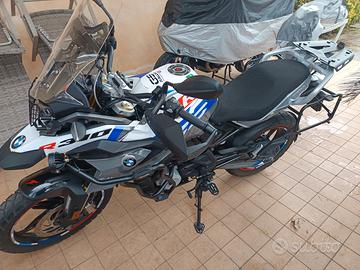 Vendo, per trasferimento all'estero per lavoro, stupenda e perfetta BMW G310GS. Km 11.000, per neopatentati e patente A2. Numerosi e perfetti accessori. La moto è come nuova, deve essere effettuato il tagliando. Ultimo tagliando dicembre 2024 ma ha percorso pochi km da allora. Gomme nuove al 90%. Faro a led con griglia di protezione. Faretti a led diurni con cablaggio specifico e interruttore a manubrio. Cupolino maggiorato. Para motore e carena in acciaio. Piastre pedaline maggiorate. Porta telefono con usb. Entrambi i parafango posteriori, sia a protezione sospensione che posteriore. Coprisella in rete. Grafica personalizzata unica nel suo genere per carrozzeria e cerchi. Telaio e piastra originale GIWI per Bauletto e valigie laterali. Tris di valige GIWI TREKKER nere perfette come nuove con poggia schiena passeggero e serrature. La moto è bellissima e perfetta. Si può fare qualsiasi prova. Il prezzo è leggermente trattabile.