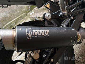 Monta faro aftermarket, paramani, specchi copri sella e bauletto Xplor, scarico Mivv con omologazione.