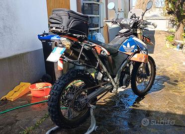 Moto fantastica, leggera ma stabile e potente, ottima per off road anche impegnativo, ma pronta a lunghi giri anche in strada con manutenzione motore a km, la vera tuttofare!! In ottime condizioni, con scarico in titanio Fresco, sfiati forcelle, piccolo spoiler anteriore, portatutto posteriore, paramani, grafiche Hyena, naturalmente qualche graffio e segno dell'uso, ma pronta ad andare ovunque vuoi tu! 💪 Vendo con dispiacere per raggiunti limiti di età ...