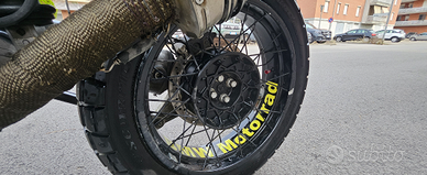 Borse posteriori in metallo costruite su misura, coppia di faretti supplementari Givi su crash bar frontale, coppia di borse laterali in tessuto tecnico Tourathec sempre su crash bar frontale, faro supplementare posto su protezione motore per fuoristrada, terminale Leovince, sella fatta su misura (non brutta come l'originale), griglia faro centrale ed altre personalizzazioni firmate Unit Garage, maniglie per presa passeggero costruite su misura, impianto frenante Brembo, griglie paramotore, 2 porte usb, elemento in alluminio per ancoraggio navigatore e/o cellulare, rivestimento scarico con nastro termico in fibra, maniglie riscaldate....e tanto altro.