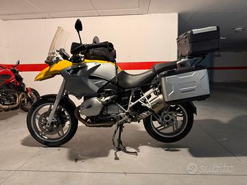 BMW R 1200 GS moto infinita, motore solido e robusto come pochi. ABS Manopole riscaldate Tris valige ORIGINALI BMW due laterali, un bauletto estendibili il centrale più grande Gomme con 1000 Km Presa usb Attacco per mantenitore di carica Appena tagliandata da 2000 km Batteria luglio 2025 Iscrivibile ASI o FMI Moto PERFETTA, no perditempo.