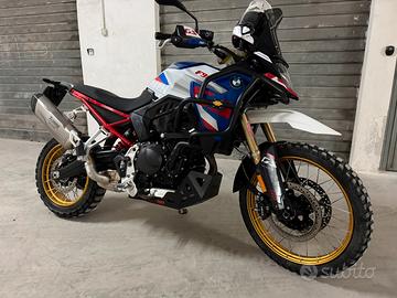Vendo stupenda bmw Gs 900 f full optional con kit enduro pro pagata 18.500? come nuova utilizzata veramente poco appena fatto da poco il primo tagliando dei 1000 km attivi 1400km la moto ha tantissimi accessori la cosa principale in assoluto è che monta il kit enduro pro quindi forcelle maggiorate Showa cerchi oro manopole riscaldate Rialzi manubrio cambio quickshifter copertoni Mitas nuovi carica telefono portatile senza fili Parafango rally telai para carene borse piccole da viaggio para motore heed in alluminio filtro aria competizione collettori e scarico completo e mappatura oltre alle 4 mappature già esistenti Rain Road Off road È il famosissimo enduro pro La vendo solamente per passaggio a moto specialistica da enduro visto che la moglie preferisce non venire mai prezzo leggermente trattabile