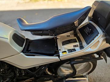Vendo BMW K 100 RS 16 V, anno 1990, km circa 83300, in condizioni splendide, se si eccettuano due graffietti (serbatoio lato sx e carenatura superiore lato dx, (si inviano foto a richiesta), ed il display delle marce che non funziona bene, nonostante sia stato sostituito anche il sensore del cambio con altro nuovo ed originale BMW. Pertanto, è molto probabile che si tratti di problemi ai fili elettrici e/o a relative connessioni presenti i sotto il serbatoio, considerato che lo stesso è stato smontato per riverniciarlo così come tutta la restante carrozzeria. I filetti azzurri sono stati realizzati da uno specialista di Milano; i pneumatici sono in buono stato. La moto risulta iscritta al Registro Storico. Ulteriori foto che rappresentano lo stato della moto, si inviano su richiesta, visto che il sito non permette inserire ulteriori foto.... La moto si trova ad Avellino. A parte si vendono anche le borse laterali in ottimo stato con le relative borse interne e ricambi vari nuovi ed originali BMW