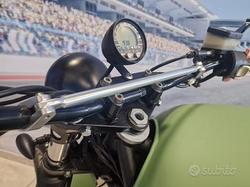 BMW K100 RS, moto immatricolata ad aprile del lontano 1985, successivamente personalizzata trasformandola in una "Cafè Racer", davvero MOLTO PARTICOLARE. Partendo dalla colorazione inedita, dai diversi dettagli che potrete notare tra le fotto dell'annuncio; Fari anteriore e posteriore sostituiti con fari LED, sella rivestita in pelle trapuntata, contachilometri Acewell Digital Dash Black/Chrome, manubrio a piega larga, specchietti Street black, tappo serbatoio dark, protezioni laterali in carbonio, protezione radiatore e molto altro! Moto tagliandata, revisionata e gommata nuova! Moto inserzionata per conto di un nostro cliente, per fissare eventuale visione il contatto: 392-042.6672, chiedere di Alan che se interessati vi integrerà video e altre foto.