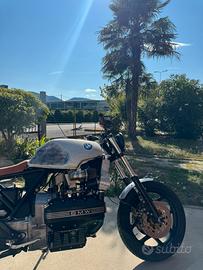 BMW K 100 RS, rivista in ogni sua parte dall'officina Arte Biker specializzati in customizzazioni Cafe Racer K100 RS, faro anteriore full Led abbagliante/anabbagliante, frecce Rizoma Led, faro posteriore Led, impianto elettrico rivisto in Aprile 2024, batteria nuova, tagliando appena effettuato olio e filtri , pompa della benzina nuova, bobine nuove il tutto effettuato presso la 4F moto di Torino, gomme in ottimo stato, sempre ricoverata in box e tenuta da amatore, impianto frenante Brembo, filtro aria a cono, radiatore RC Racing, moto unica nel suo genere.